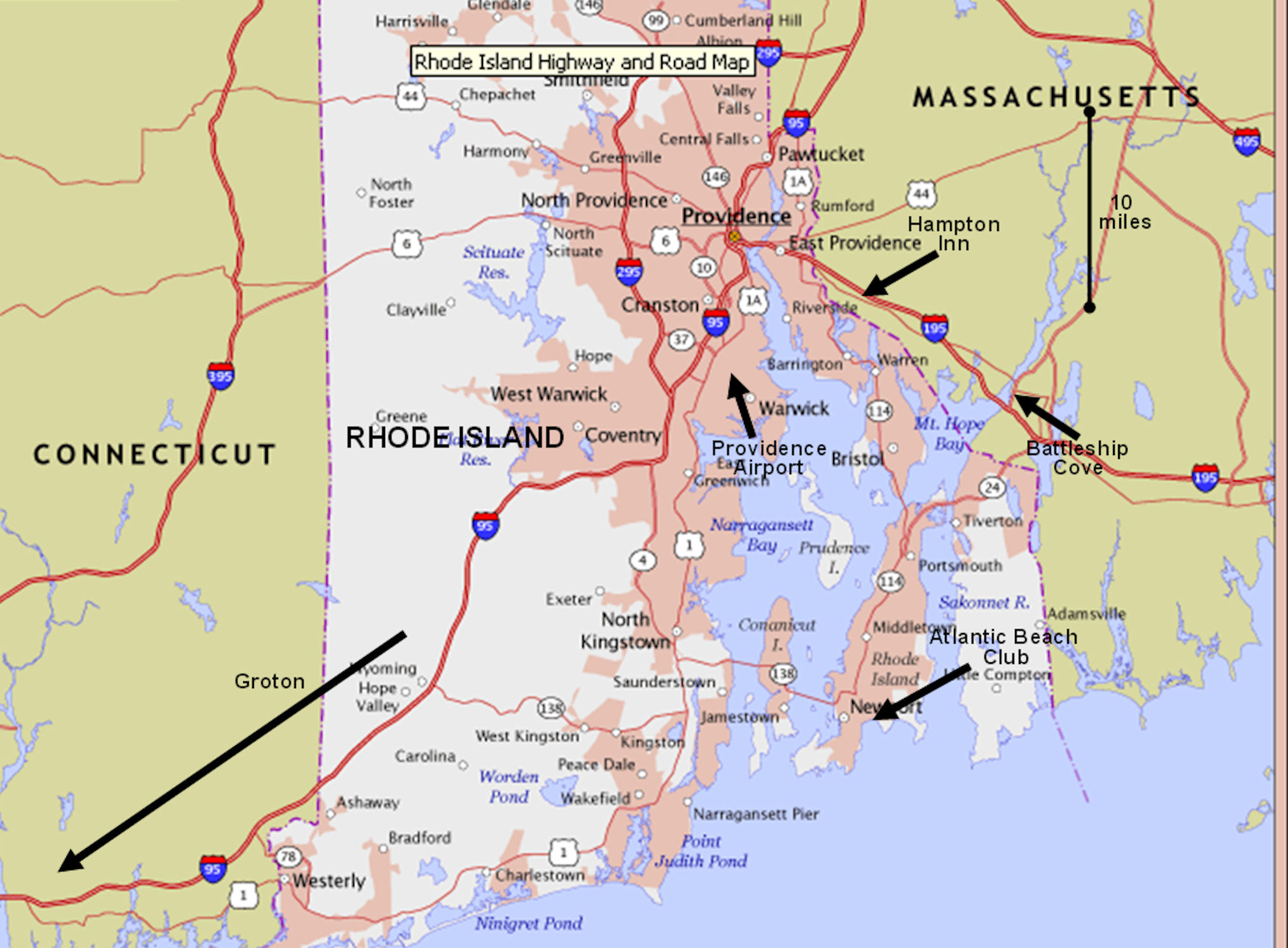The homeport hotel was located about 12miles north of the Providence (PVD) T.F. Green Airport.